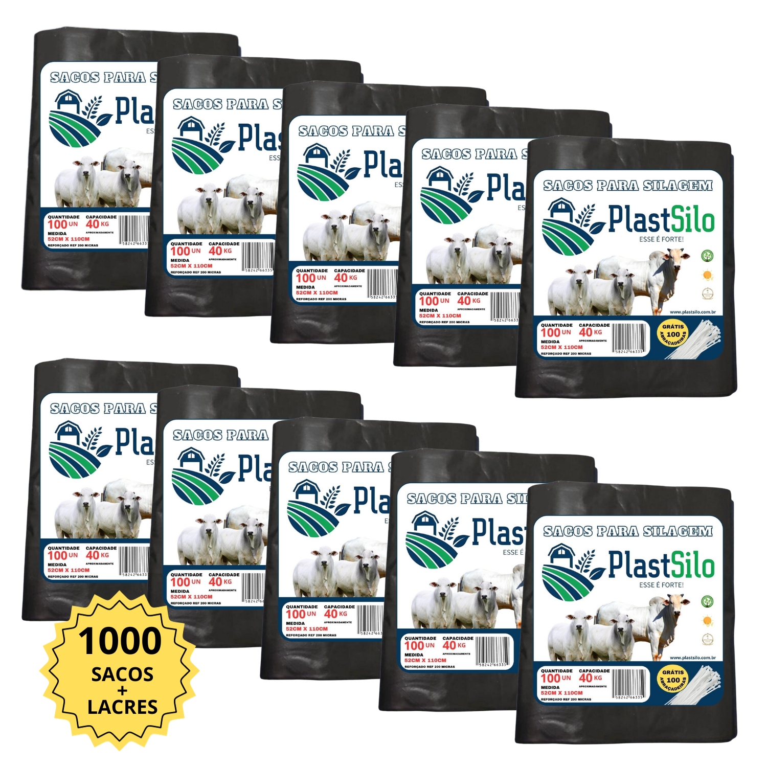 Loja especializada em sacos para silagem, com variedade de cores, espessuras e quantidades.
